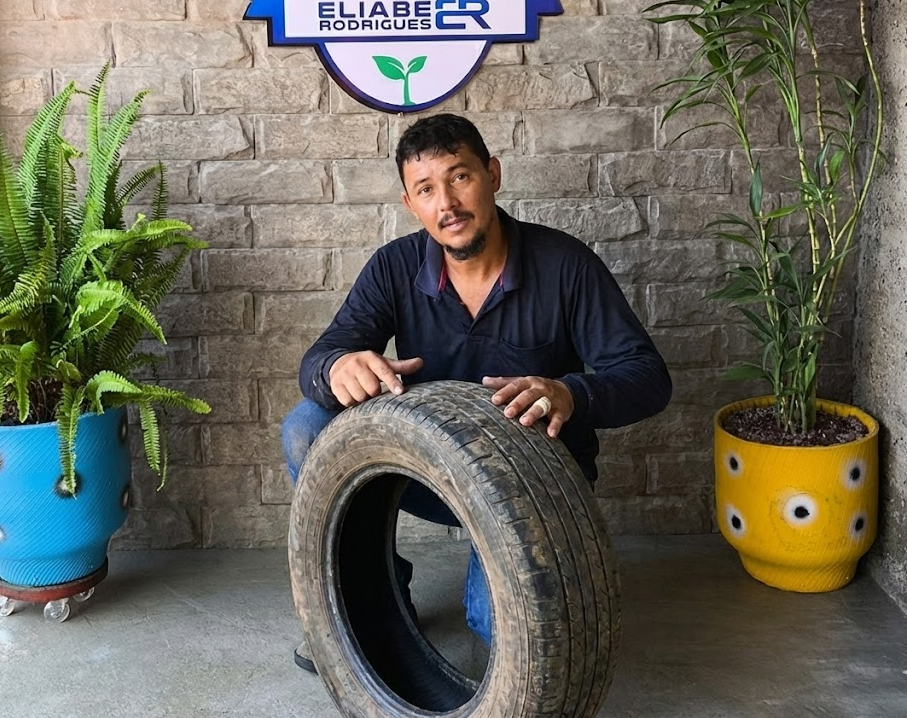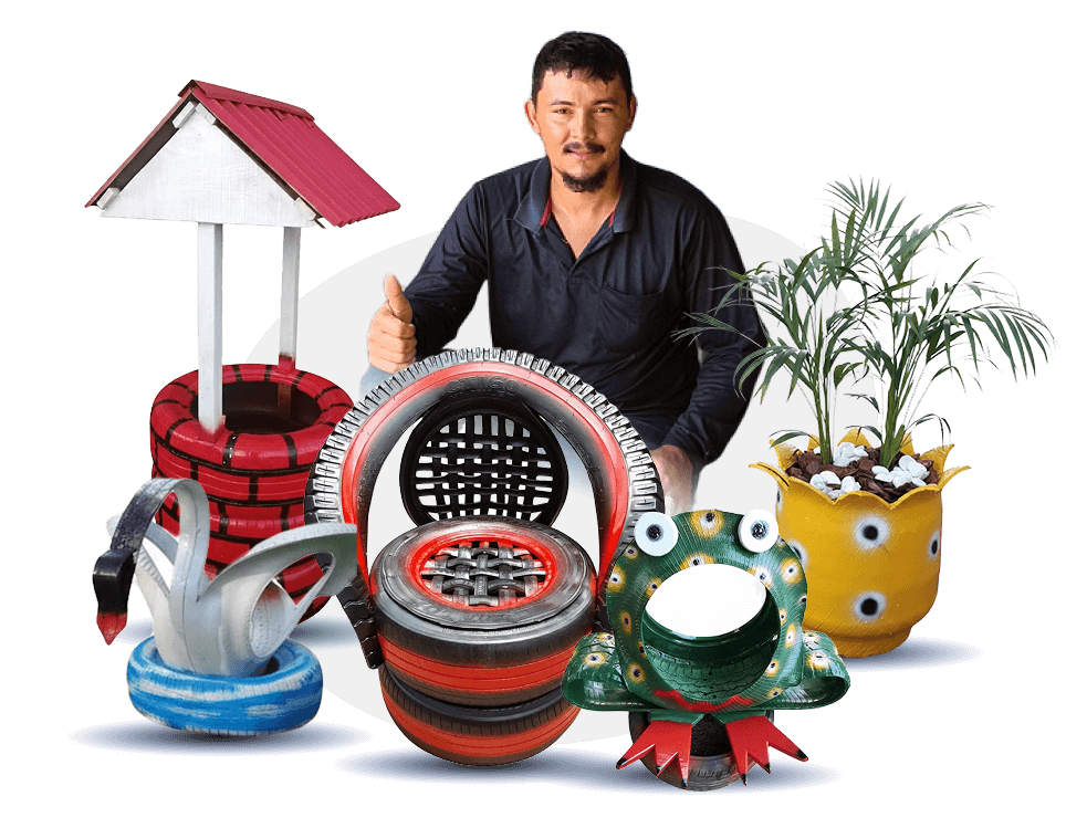 Aprenda com Eliabe, artesão especialista em esculturas com pneus reciclados, através de cursos práticos e diretos.