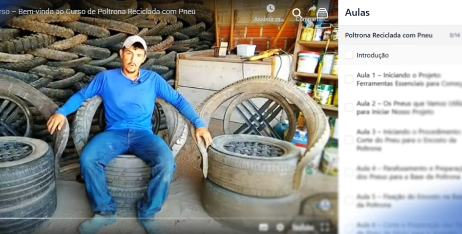 Eliabe é artesão há mais de 20 anos. Reconhecido por transformar pneus reciclados em esculturas impressionantes, ele decidiu compartilhar sua experiência em uma série de cursos completos.